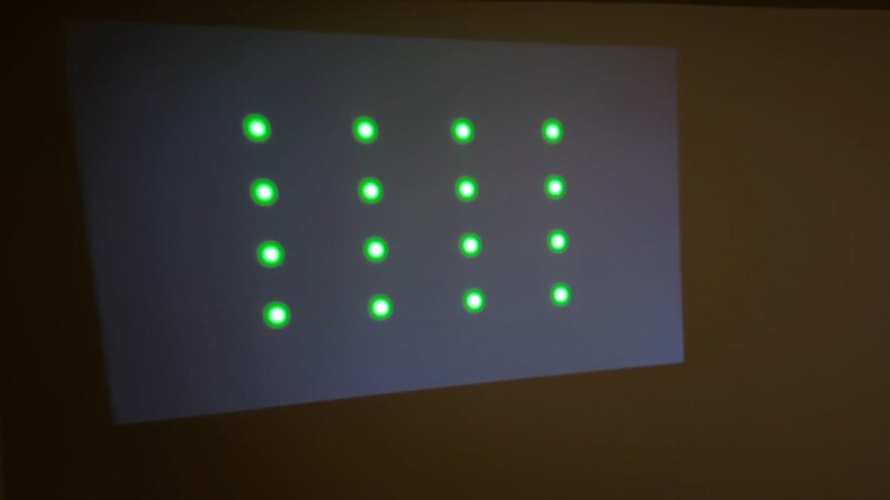 Once you turn on the projector, it will do a quick auto calibration to make sure the screen doesn't look skewed. I've used this on a household wall, an exterior stucco wall, the side of a shed, and a sheet hung on a deck and in all cases the projector's auto calibration feature figured out how to make the visuals look decent.